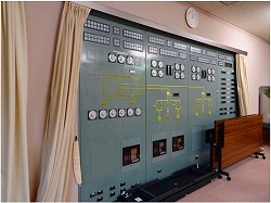 奥多々良木発電所の紹介では、下池である多々良木ダムのアスファルトフェーシングや貯水位の増減時の湖面状況などについて語っていいただきました。また、発電所の配管模型図や発電水車の模型図、建設当時の操作盤などもご紹介いただきました。