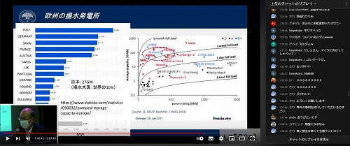 最後に、海外の揚水発電所であるNant de Drance pumped storage power plantの動画を紹介いただきました。視聴者の皆様のチャットが一時停止するほどのプレゼンでした。