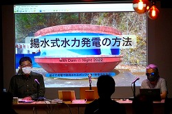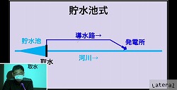 写真2.5 揚水式発電の方法の紹介 左 Hisaさま、右 夜雀さま(司会) |