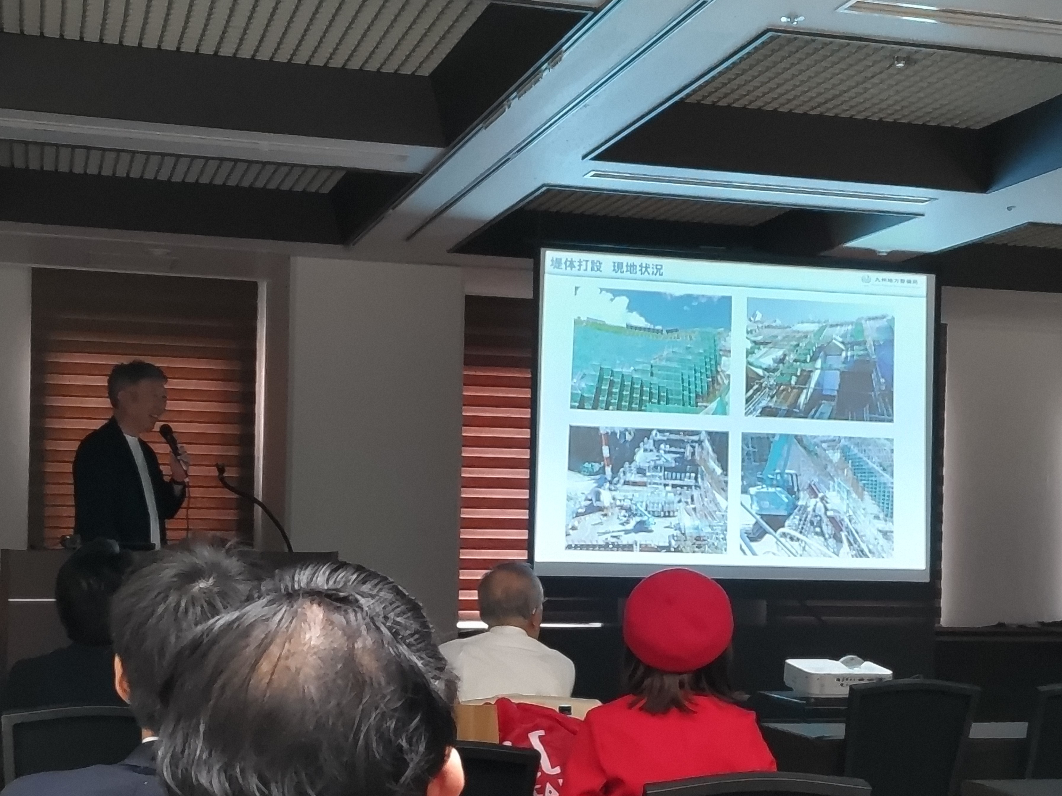 最初の講演は、「阿蘇立野ダム苦楽ばなし」と題して、九州地方整備局河川情報管理官の甲斐公久さまから、建設中の立野ダムについてご講演いただきました。