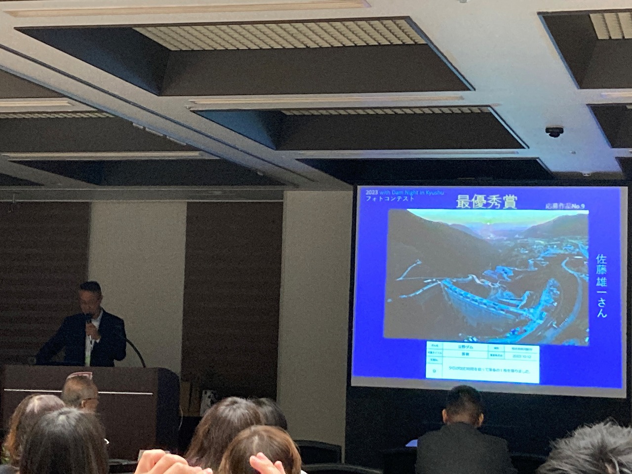 wDNの開催に合わせて「2023九州ダムフォトコンテスト」と題して、九州地区のダム写真の募集を行いました。また、募集写真の中から、当日参加者の投票により入賞写真を選出し、wDN実行委員会の泉倫光委員より、審査発表を行いました。