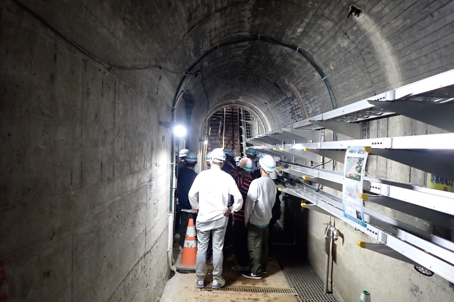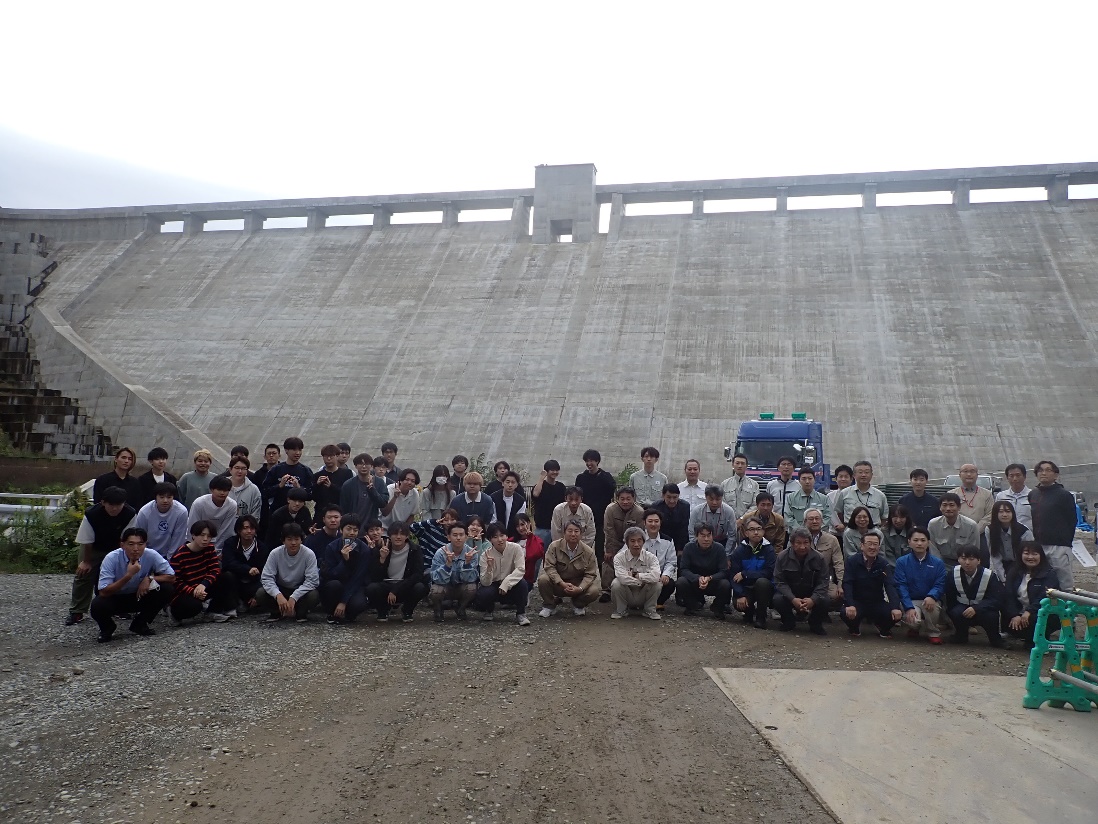 昭和32年に完成した桂沢ダムを嵩上げして建設した再開発ダムであり、嵩上げにより、従来の治水・利水機能を増大させた。本見学会では管理者から概要説明を受け、完成間もない堤体や付属設備を見学した。
