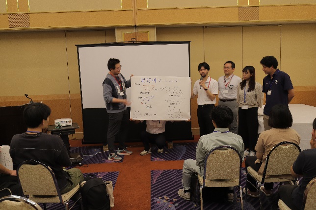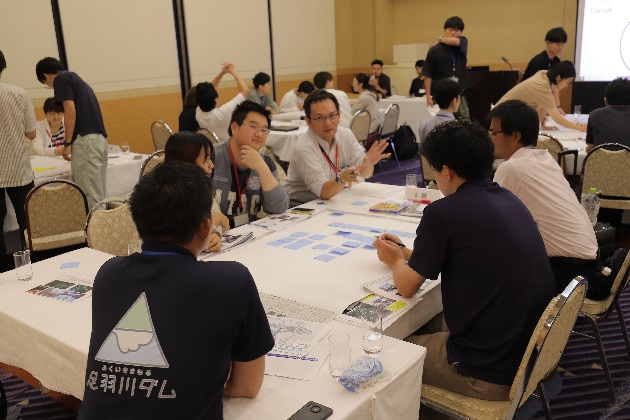 次に、グループワークを実施し、足羽川ダムの特徴でもある流水型ダムに焦点を置いた「流水型ダムにおける洪水時以外でのダムの有効的な活用方法」をテーマにそれぞれが考えたアイデアを発表し合いました