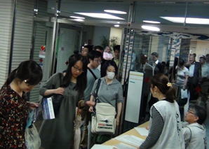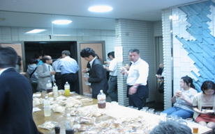 今回の月島の会場定員は240名ですが、入場者数は170名(来客150名+出演8名+スタッフ12名)で昨年より2割ほど増加しました。中でも一般の方が大半を占めるようになり、特に女性の方(全体の3割強)の数が増えたのが特徴です。また、開演前の軽食・飲食コーナーでは、昨年にも増して和気藹々の雰囲気が満ちていました。ただし、好評のあまり飲み物が先に無くなったのが反省材料です。 なお、今回はスタッフ全員が白いメッシュベストを着用して会場対応を行いましたが、胸にDAM☆LOVE、背に抱夢(夢を抱く、ダム)と印刷したこのベストは判りやすく好評でした。