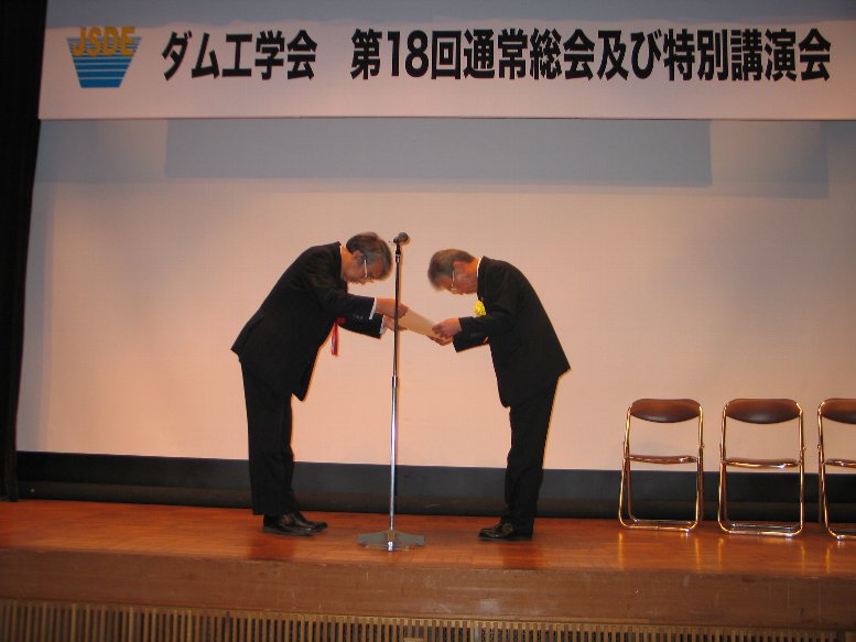 平成20年2月20日に開催された選考委員会及び平成20年3月5日に開催された表彰委員会において、平成19年度のダム工学会賞が下記の通り決定され、本通常総会において表彰状と盾が受賞者に手渡されました。